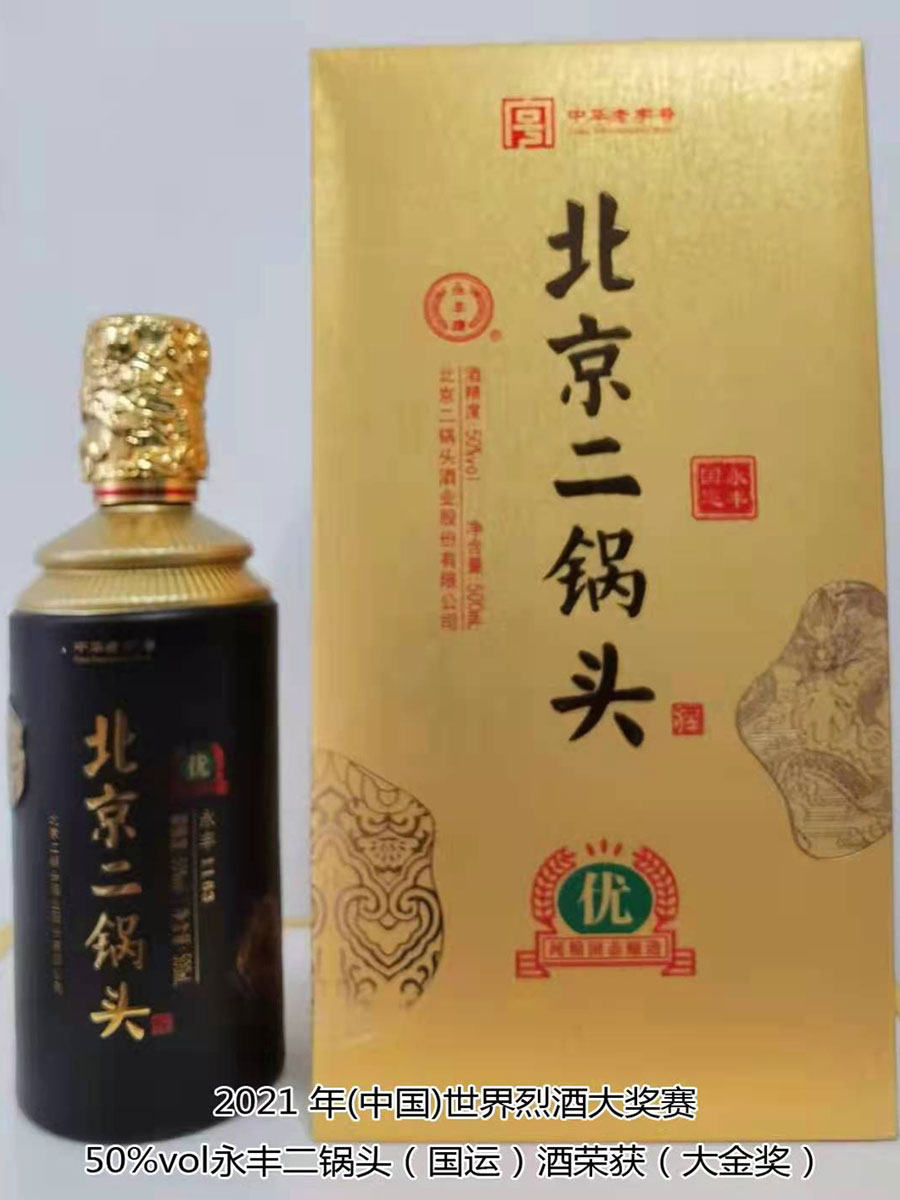 北京二鍋頭酒業(yè)股份有限公司傳承老北京二鍋頭傳統(tǒng)釀造技藝,產(chǎn)品選用優(yōu)質(zhì)高粱為原料,以麩曲為糖化發(fā)酵劑,采用老五甑發(fā)酵法、混蒸混燒、看花接酒、掐頭去尾、長(zhǎng)期儲(chǔ)存、精工勾兌而成。產(chǎn)品多次獲得各種優(yōu)質(zhì)產(chǎn)品稱號(hào),“永豐牌”商標(biāo)2000年度、2004年度、2007年度連續(xù)三屆被北京市工商行政管理局認(rèn)定為北京市著名商標(biāo);2003年9月,“永豐”二鍋頭、京王子酒被評(píng)為北京市優(yōu)秀新產(chǎn)品獎(jiǎng);2004年,被授予“中國(guó)白酒質(zhì)量?jī)?yōu)秀產(chǎn)品”及首都市場(chǎng)“質(zhì)量、信譽(yù)、服務(wù)”優(yōu)秀企業(yè)、優(yōu)質(zhì)產(chǎn)品稱號(hào);2006年11月,被評(píng)為“中國(guó)歷史文化名酒”;2007年12月,被評(píng)為“AAA”級(jí)信用企業(yè),同年榮獲“中國(guó)質(zhì)量過硬知名品牌”;2011年5月,“永豐”牌被中華人民共和國(guó)商務(wù)部評(píng)為“中華老字號(hào)”;2021年10月,在2021國(guó)際酒類(中國(guó))大獎(jiǎng)賽中,北京二鍋頭酒業(yè)股份有限公司共獲得五枚金牌,其中38%vol永豐酒坊老字號(hào)酒、46%vol永豐品鑒酒、52%vol醉流霞瓷瓶酒、50%vol永豐粱大俠(典藏)酒四款產(chǎn)品榮獲“金獎(jiǎng)”,50%vol永豐二鍋頭(國(guó)運(yùn))酒榮獲“大金獎(jiǎng)”。此次大獎(jiǎng)賽北京二鍋頭酒業(yè)股份有限公司榮登“金獎(jiǎng)”之首,得到了國(guó)際酒類(中國(guó))大獎(jiǎng)賽組委會(huì)及全國(guó)頂級(jí)評(píng)酒大師、酒業(yè)泰斗專家們的一致好評(píng),肯定了北京二鍋頭酒業(yè)股份有限公司專業(yè)技術(shù)人員高超的技藝和敬業(yè)的工匠精神。