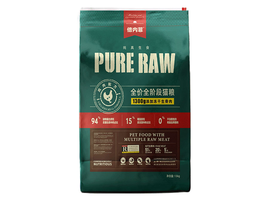 倍內(nèi)菲產(chǎn)品含有高含量的動物性蛋白以及盡可能少的碳水化合物,所以選擇純真生鮮飲食的方式,用高蛋白主糧顆粒大搭配鮮肉凍干、生骨肉,用科學(xué)、安全、天然、營養(yǎng)、健康的飲食,讓寵物回歸自然天性。