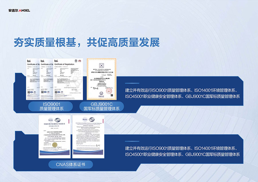 安吉爾擁有三大生產(chǎn)基地,其中安吉爾環(huán)境科技智慧園占地超60萬平方米,可實(shí)現(xiàn)年產(chǎn)1000萬臺(tái)(套)的凈飲水產(chǎn)品規(guī)模。安吉爾擁有完整的生產(chǎn)管理體系,已獲中國CQC、美國UL、美國NSF、加拿大CSA、法國BV、英國ITS、瑞士SGS和德國TüV全球八項(xiàng)權(quán)威機(jī)構(gòu)認(rèn)證。