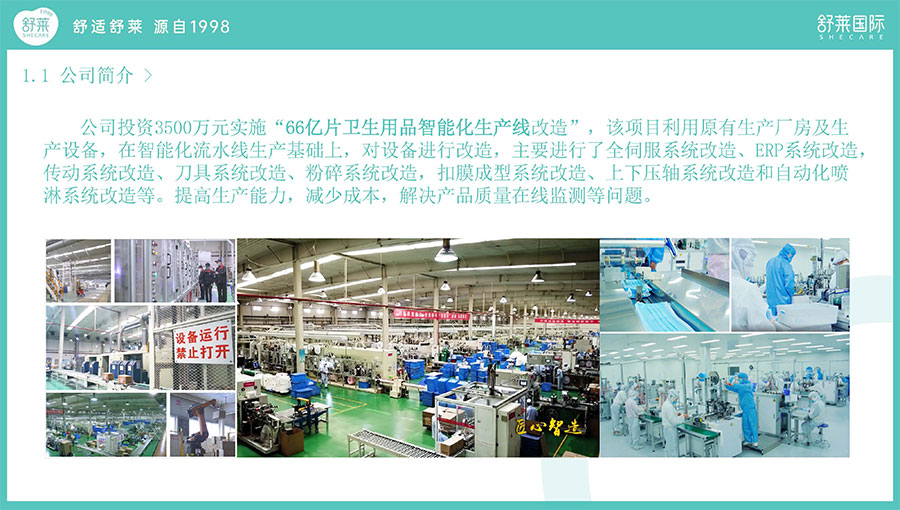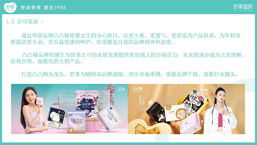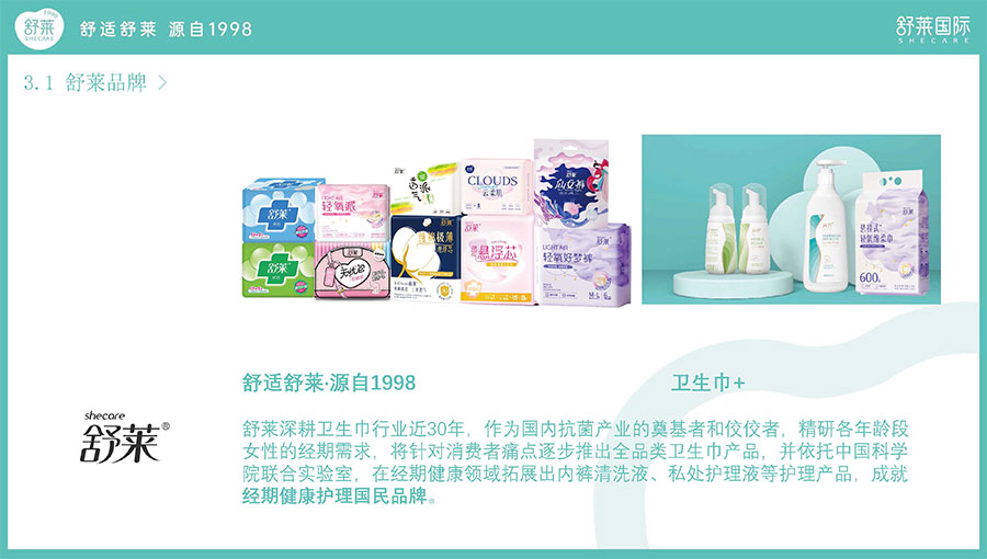 主要產(chǎn)品:舒萊、凸凸棉衛(wèi)生巾、衛(wèi)生護(hù)墊、安睡褲(女性衛(wèi)生褲)