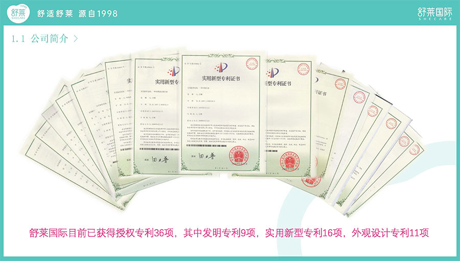 舒萊,一個(gè)女性朋友熟知的國(guó)貨品牌,26年來(lái)一直在襄城縣默默“發(fā)育”。目前舒萊公司擁有12條現(xiàn)代化全自動(dòng)生產(chǎn)線,不斷地通過(guò)產(chǎn)品研發(fā)和技術(shù)創(chuàng)新,取得了輝煌業(yè)績(jī)。截至2024年7月1日共有專(zhuān)利36個(gè),擁有9項(xiàng)發(fā)明專(zhuān)利,13項(xiàng)實(shí)用新型專(zhuān)利,10項(xiàng)外觀設(shè)計(jì)專(zhuān)利,衛(wèi)生巾年生產(chǎn)能力達(dá)66億片,被認(rèn)定為“國(guó)家級(jí)高新技術(shù)企業(yè)”“省級(jí)抗菌婦女衛(wèi)生用品工程技術(shù)研究中心”“中國(guó)女性衛(wèi)生用品行業(yè)十強(qiáng)企業(yè)”,已成為國(guó)內(nèi)衛(wèi)生巾生產(chǎn)領(lǐng)域領(lǐng)軍企業(yè)。