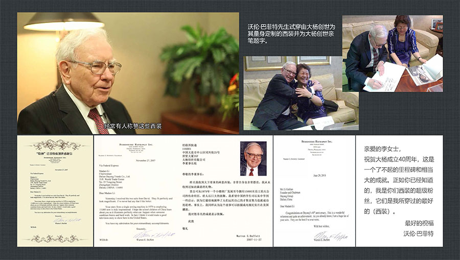 大楊集團(tuán)創(chuàng)建于1979年,總部位于遼寧省大連市,主要生產(chǎn)和銷售各類中高檔服裝產(chǎn)品為主的國際化大型服裝企業(yè),以西裝縫制享譽全球,是世界重要的西裝生產(chǎn)加工基地。現(xiàn)有直屬(控股)成員企業(yè)20家,員工4500人??毓勺庸敬筮B大楊創(chuàng)世股份有限公司2000年在上海證券交易所上市,并于2016年完成重大資產(chǎn)重組。