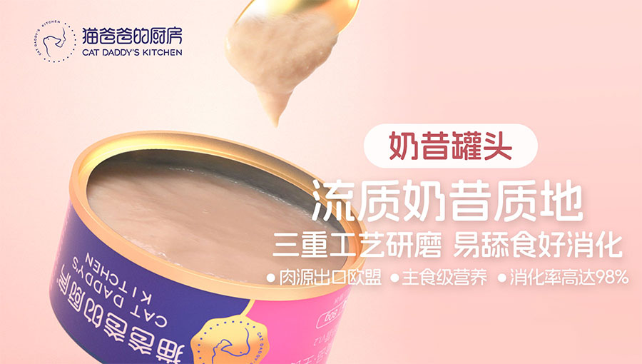 2015年,面對(duì)十年前參差不齊的貓糧品質(zhì),品牌創(chuàng)始人貓爸在貼吧分享的自制貓飯被網(wǎng)友瘋搶,于是,“貓爸爸的廚房”就此誕生。