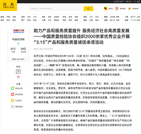 中國經濟網:傳遞質量信任、引導質量消費,我們堅持在行動!——中國質量檢驗協(xié)會組織2000余家優(yōu)秀企業(yè)在2021年“3.15”開展產品和服務質量誠信承諾主題活動