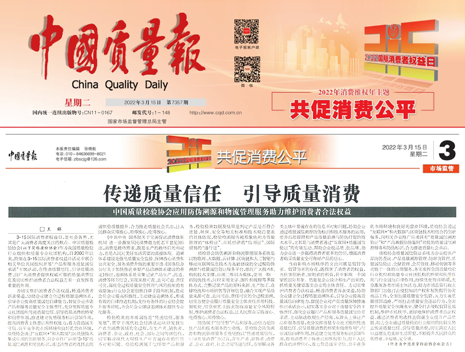 ——中國質(zhì)量檢驗協(xié)會應(yīng)用防偽溯源和物流管理服務(wù)助力維護消費者合法權(quán)益