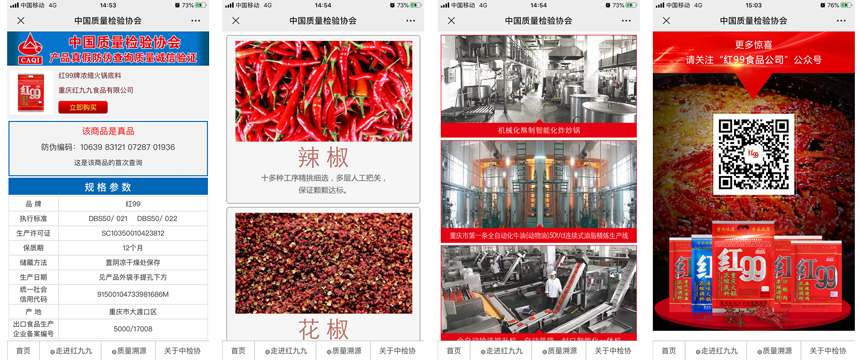 質(zhì)量檢驗(yàn)作為確保產(chǎn)品質(zhì)量的基礎(chǔ),貫穿于現(xiàn)代經(jīng)濟(jì)活動(dòng)從研發(fā)到生產(chǎn)直至消費(fèi)領(lǐng)域的全過程。中國(guó)質(zhì)量檢驗(yàn)協(xié)會(huì)作為全國(guó)質(zhì)量檢驗(yàn)行業(yè)組織,具有“傳遞信任,服務(wù)發(fā)展”的本質(zhì)屬性。中檢聯(lián)合質(zhì)量誠(chéng)信驗(yàn)證系統(tǒng)堅(jiān)持以“傳遞質(zhì)量信任、引導(dǎo)質(zhì)量消費(fèi),建立消費(fèi)者和企業(yè)信任的平臺(tái)”為宗旨,在生產(chǎn)者、銷售者、消費(fèi)者、企業(yè)、政府、社會(huì)之間傳遞信任,方便解決各類主體中普遍存在的信息不對(duì)稱問題,協(xié)助企業(yè)通過質(zhì)量誠(chéng)信溯源防偽標(biāo)識(shí)和技術(shù)服務(wù)的運(yùn)用,提升品質(zhì)管理和產(chǎn)品質(zhì)量追溯與防偽打假的技術(shù)水平,尤其是與消費(fèi)者通過“互聯(lián)網(wǎng)+質(zhì)量誠(chéng)信驗(yàn)證”的有效互動(dòng),幫助企業(yè)提品質(zhì)、創(chuàng)品牌,助力企業(yè)進(jìn)一步贏得消費(fèi)者更多的信任,增強(qiáng)消費(fèi)者購(gòu)買質(zhì)量安全可靠好產(chǎn)品的信心。